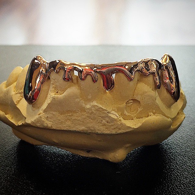 Precious Solid Gold Dripping Over Signature Punch Design with our Signature Diamond Cut Fangs (Slightly Extended) This Grillz Set is an STLGRILLZZ Exclusive. This particular grills...